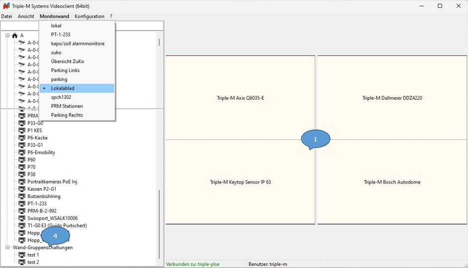 Verfügt der eingeloggte Benutzer über die entsprechenden Rechte kann er konfigurierte Videowalls beschalten.