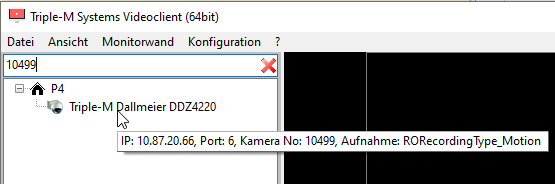 - Falls 1. und 2. nicht zutreffen und ein Punkt im Suchstring ist wird nach der Kamera IP Adresse gefiltert: