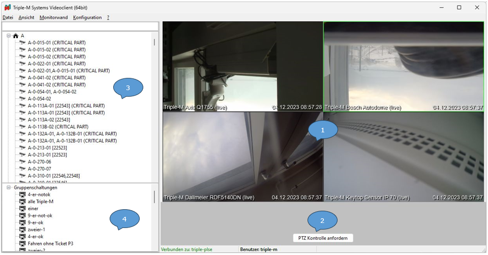 Ist die Kamera PTZ fähig und der Benutzer verfügt über die entsprechenden Rechte um die Kamera zu steuern ist das PTZ Kamerasymbol sichtbar.