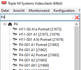 - Falls Punkt 1. nicht erfüllt sind alle Kamera mit dem Namen im Suchstring sichtbar: